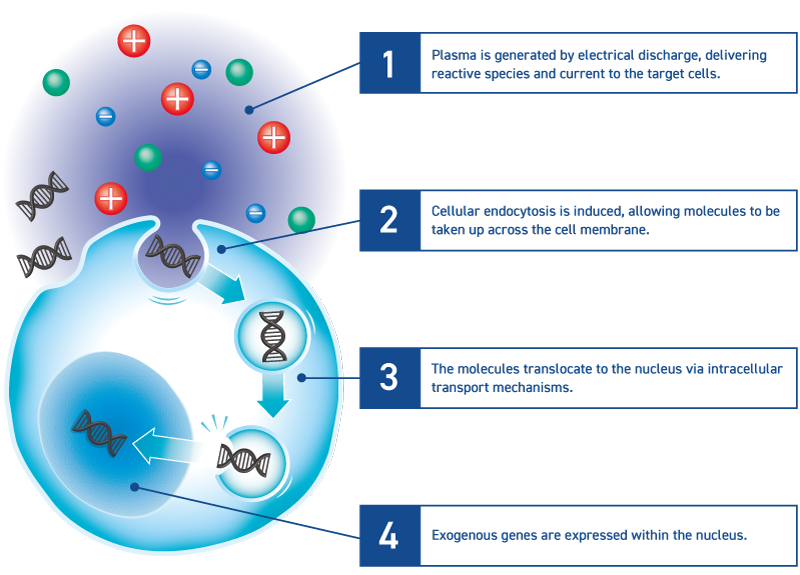 This device induces cellular endocytosis using plasma, enabling the intracellular delivery of molecules with minimal damage.